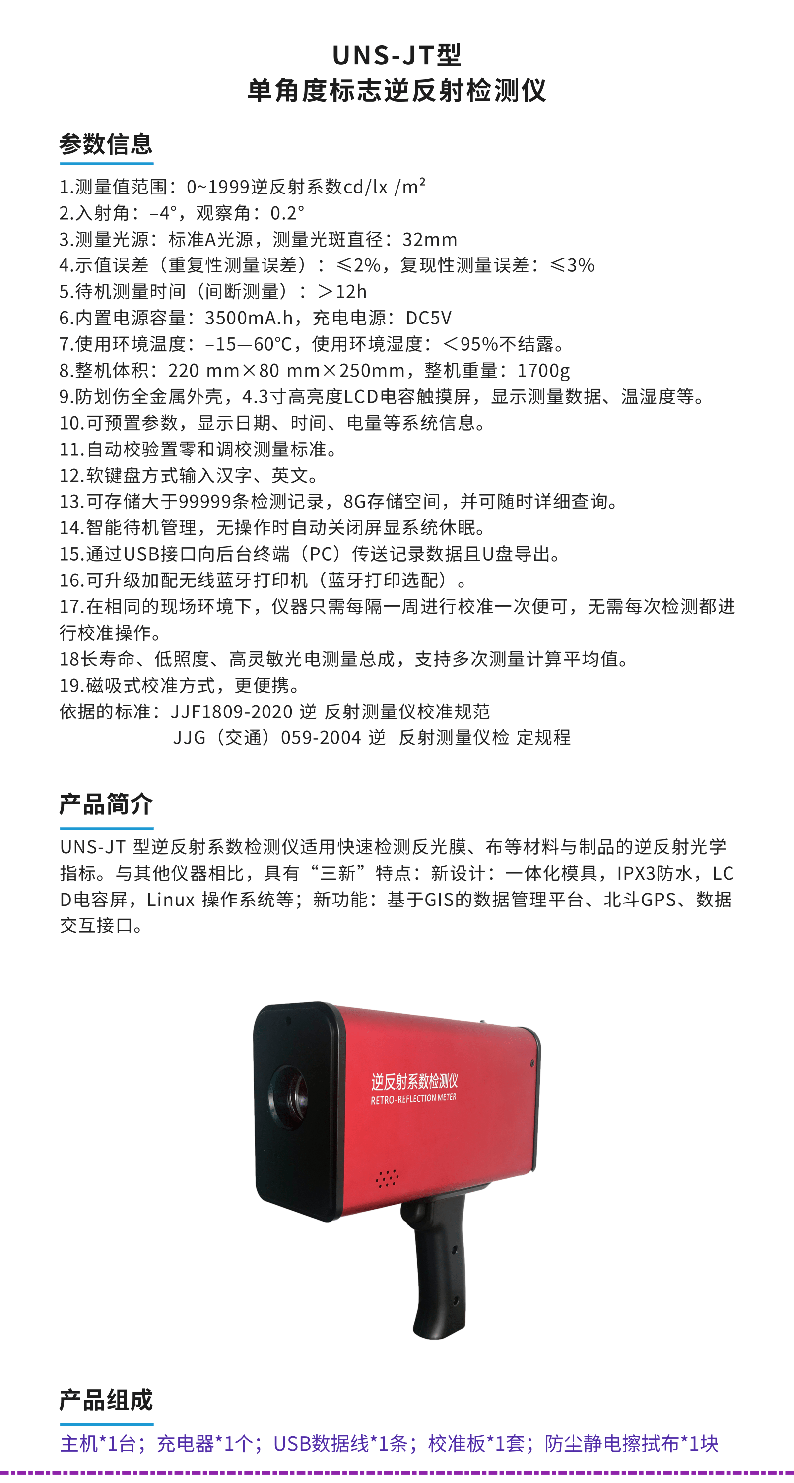 UNS-JT 标志逆反射系数检测仪